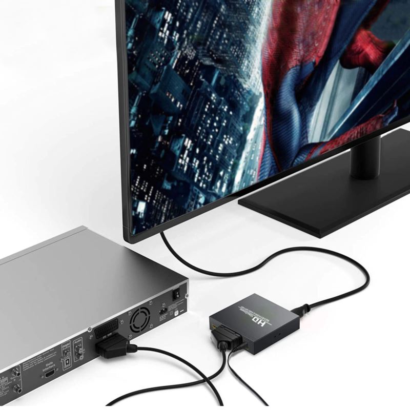Umożliwia on bezproblemowe odtwarzanie filmów na odtwarzaczu DVD ze złączem SCART w jakości Full HD. Sygnał z różnych urządzeń typu DVD, konsole do gier (PS2, PS3, PS4, WII, XBOX360, PS5 czy Xbox One) możemy podłączyć do telewizora lub monitora w wysokiej jakości.