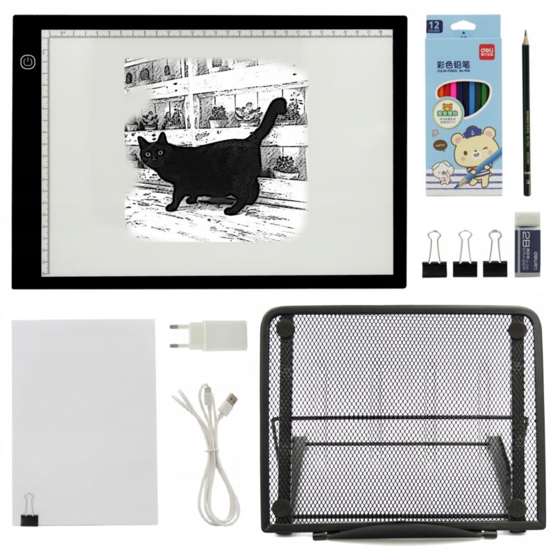Podświetlana deska kreślarska to doskanałe rozwiązanie do tworzenia nowych rysunków, kalkowania obrazów lub projektowania nowych grafik. Prostota używania sprawi, iż użytek zrobią z niej nie tylko profesjonalni graficy, lecz zarówno rysownicy-amatorzy.