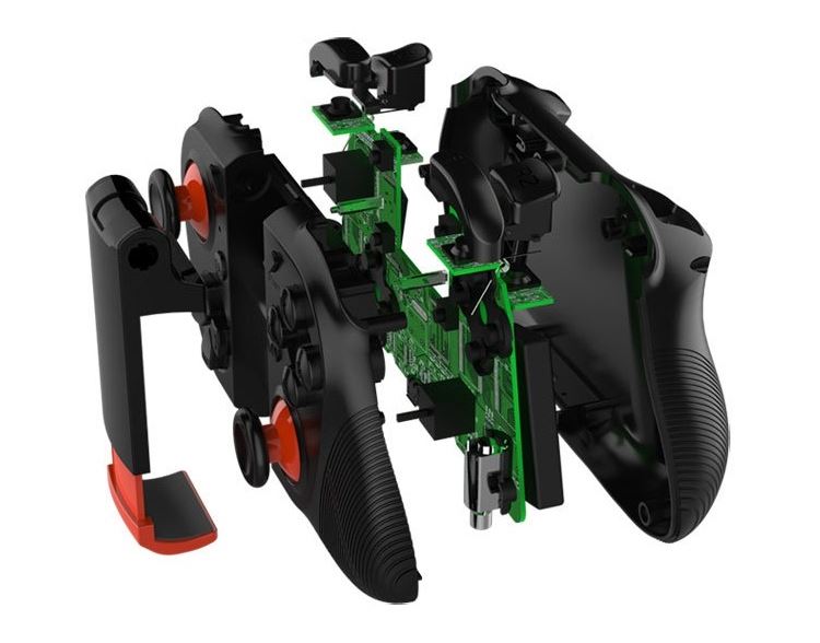 Do pada zamontowany jest specjalny uchwyt, który pozwoli przymocować smartfona bezpośrednio do gamepada. Pozwala to w wygodny sposób cieszyć się popularnymi grami oraz aplikacjami z urządzeniem przed oczami.