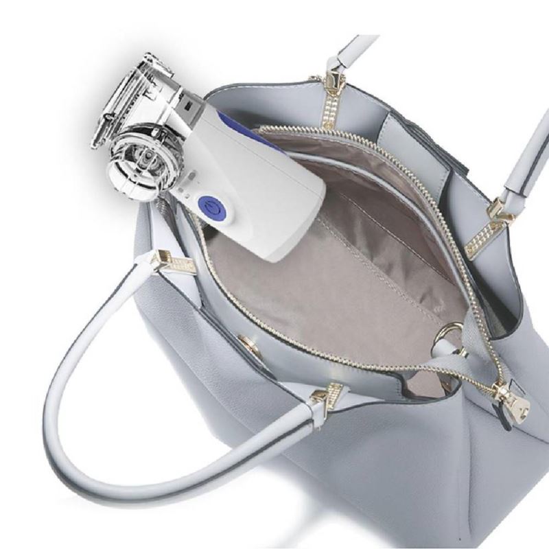 Dzięki swoim niewielkim rozmiarom można go zabrać ze sobą w każde miejsce, gdzie tylko chcesz. Inhalator jest zasilany akumulatorem lub/i zasilaczem USB (można również podłączyć do wtyczki sieciowej lub tzw. zapalniczki samochodowej poprzez przejściówkę). Dzięki temu możesz kontynuować leczenie podczas podróży.