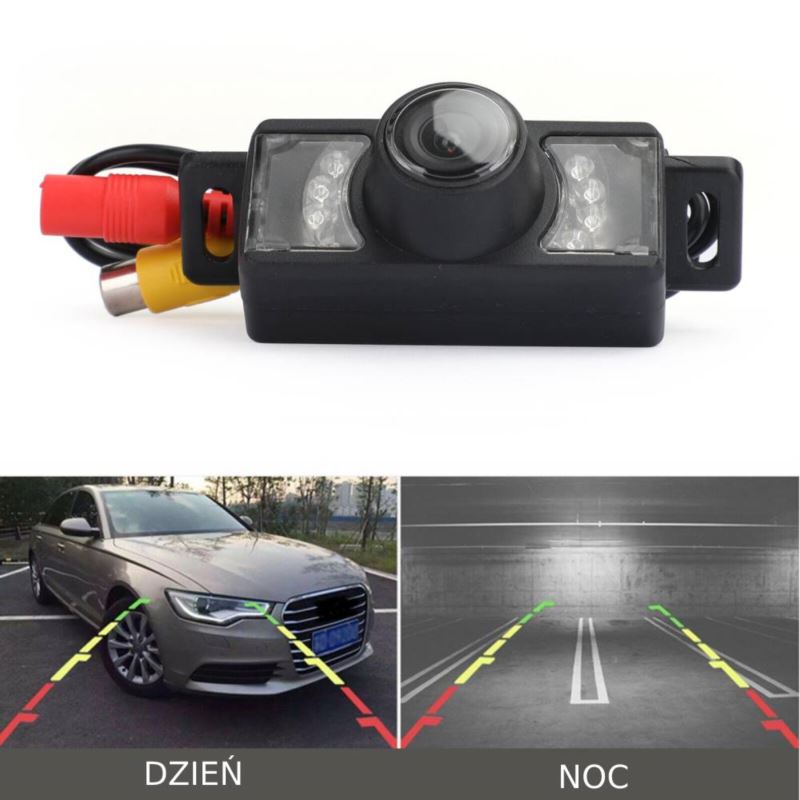 Kamera obsługuje widoczność w nocy. Obraz jest ostry i dobrze widoczny co zwiększa bezpieczeństwo jazdy. Noktowizor posiada dodatkowo zamontowane diody LED aby poprawić widoczność.