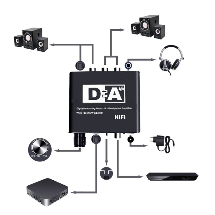 Przedmiotem aukcji jest dwukierunkowy konwerter sygnału audio na sygnał analogowy lub cyfrowy. Adapter nie zniekształca sygnału. Urządzenie posiada wbudowany wzmacniacz dźwięku. Zastosowanie produktu to wzmacniacz do głośników/słuchawek z wejściem jack 3,5 mm lub jako konwerter w domowych i profesjonalnych systemach audio.