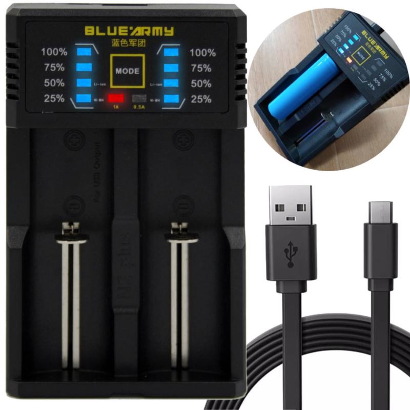 Li-ion: 10440, 14500, 16340, 17355, 17500, 17670, 18490, 18650, 22650, 26500, 26650