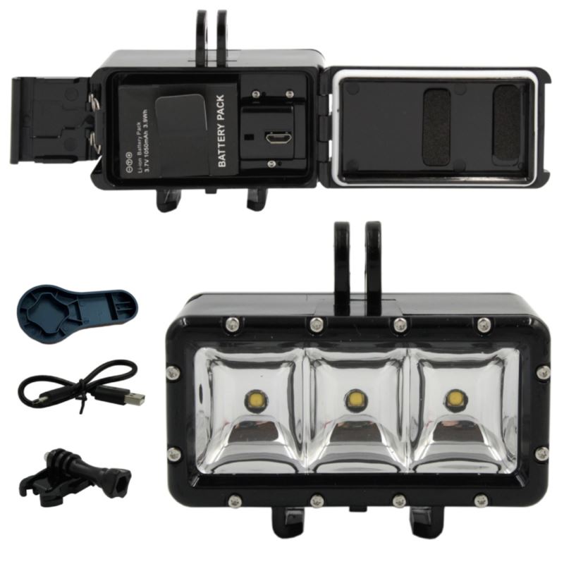 Wodoszczelna lampa LED, idealna do robienia zdjęć i nagrywania w nocy, podczas nurkowania oraz w innych ciemnych miejscach.