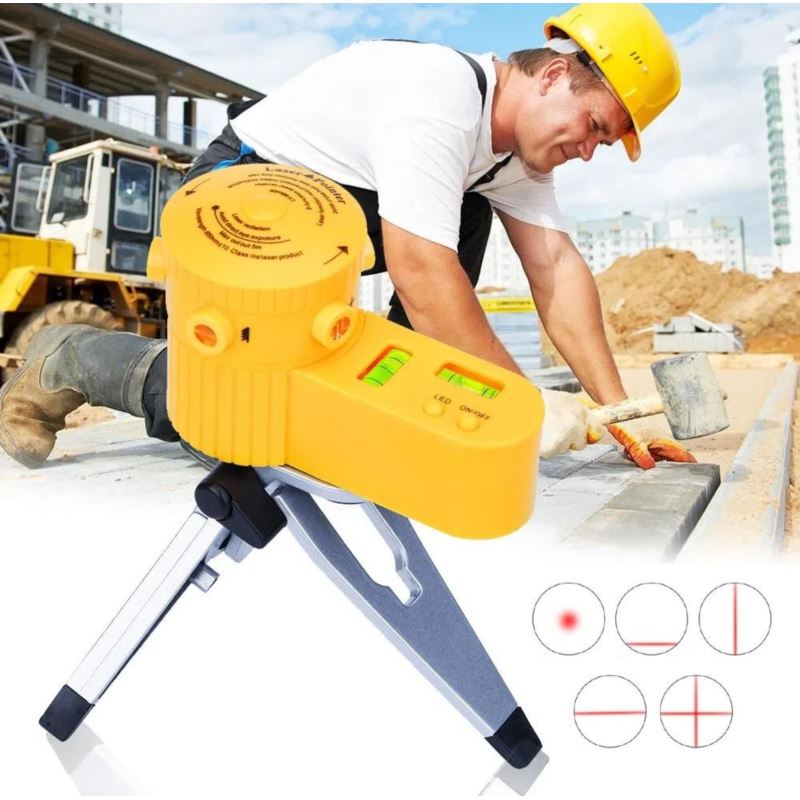 Przedmiotem oferty jest poziomica laserowa. Poziomica posiada 8 różnych trybów wyświetlania wiązek, dwie libelki i podświetlenie LED. W zestawie znajduje się też statyw, który pozwala ustawić poziomicę na dowolnej powierzchni.