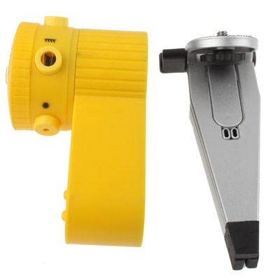 Razem z poziomicą w pudełku znajduje się statyw z trzema nóżkami. Czyni to poziomicę niezwykle uniwersalnym narzędziem.