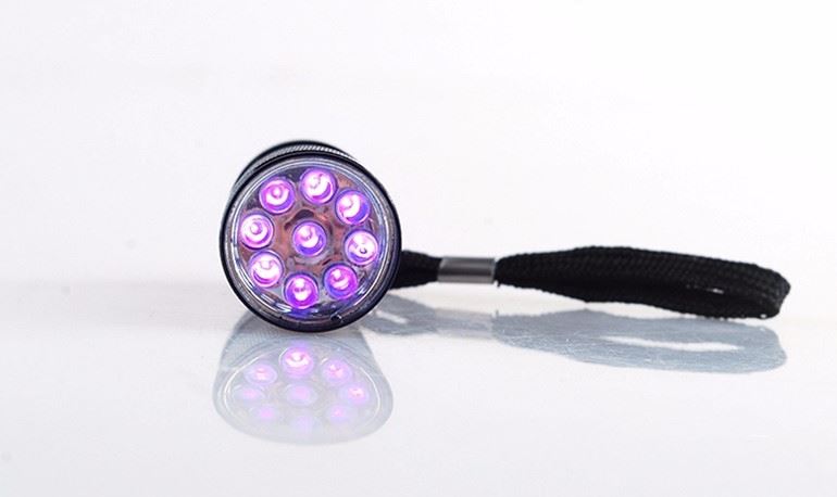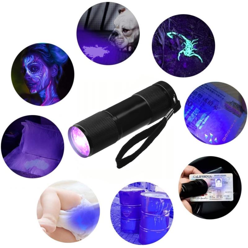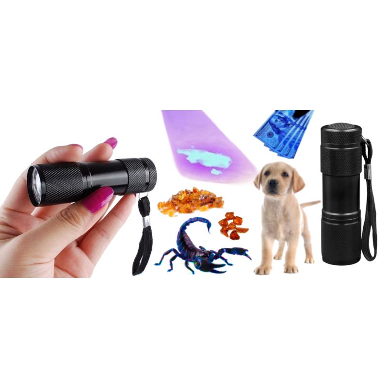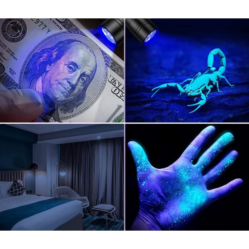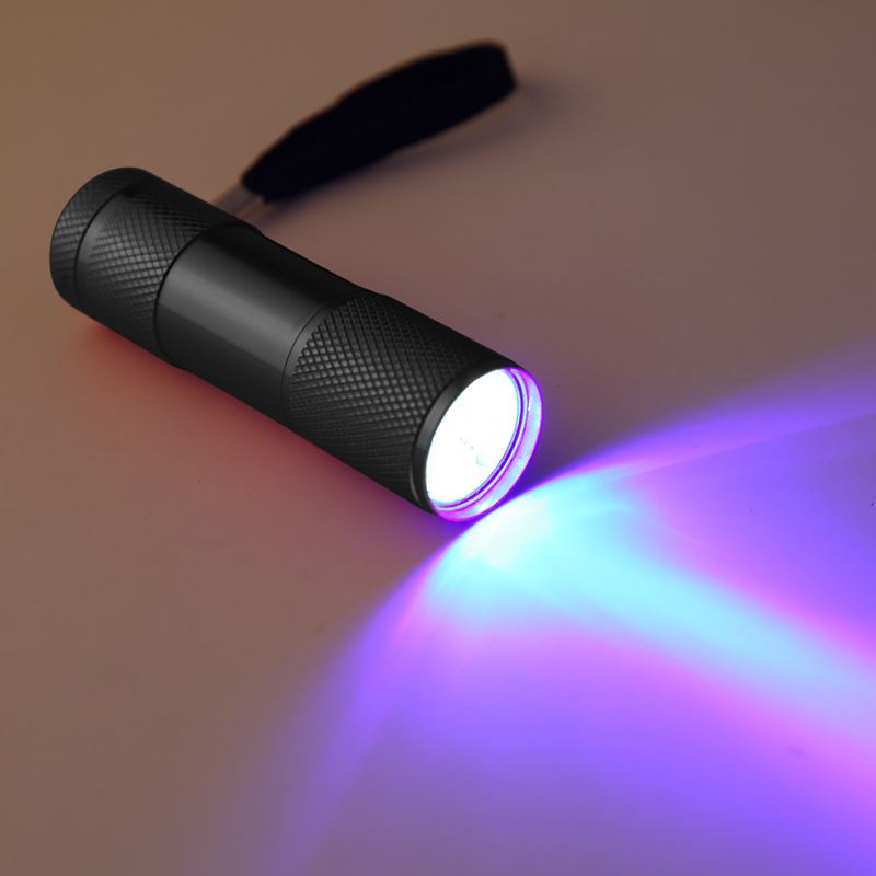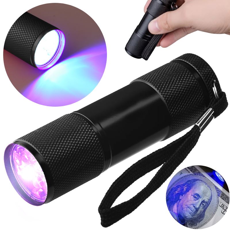 ✔️ Latarka posiada bardzo mocne źródło światła, 9 diod UV o długości fali 395 - 400 mn