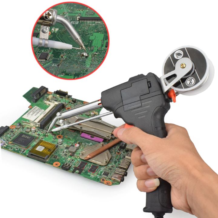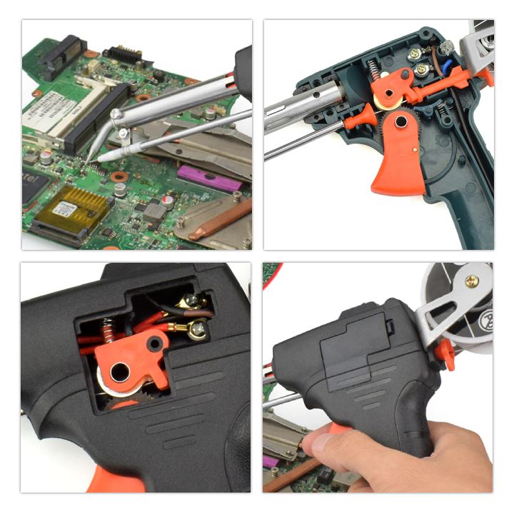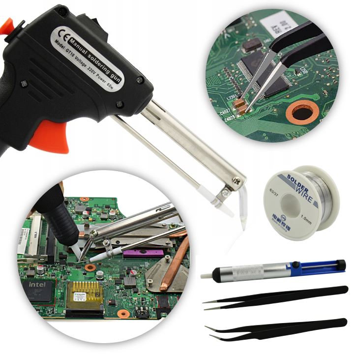 Oferowana lutownica jest nowa, bardzo wysokiej jakości. Lutownica pistoletowa jest idealna do lutowania podzespołów elektronicznych o średniej i dużej wielkości. Dodatkowo urządzenie wyposażone jest w podajnik cyny, przez co możliwe jest lutowanie za pomocą tylko jednej ręki. Drugą w tym czasie możemy wykorzystać do przytrzymania przewodów.