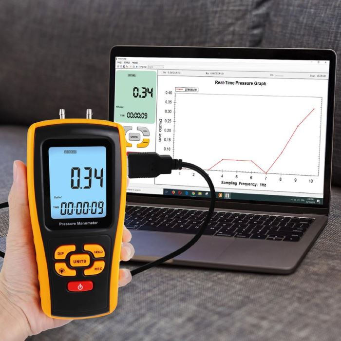 Szeroko stosowany w pomiarach ciśnienia wentylatorów,ciśnenia powietrza, ciśnienia piekarnika, różnicy ciśnień filtrów oraz monitorowania zawartości gazów w powietrzu w procesie spalania.