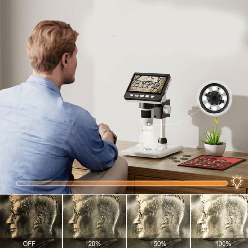 Mikroskop cyfrowy z wyświetlaczem LCD to świetne narzędzie, którego możemy używać zarówno w domu, szkole, laboratorium, jak i warsztacie. Sprawdzi się przy naukowych obserwacjach oraz naprawie elektroniki.