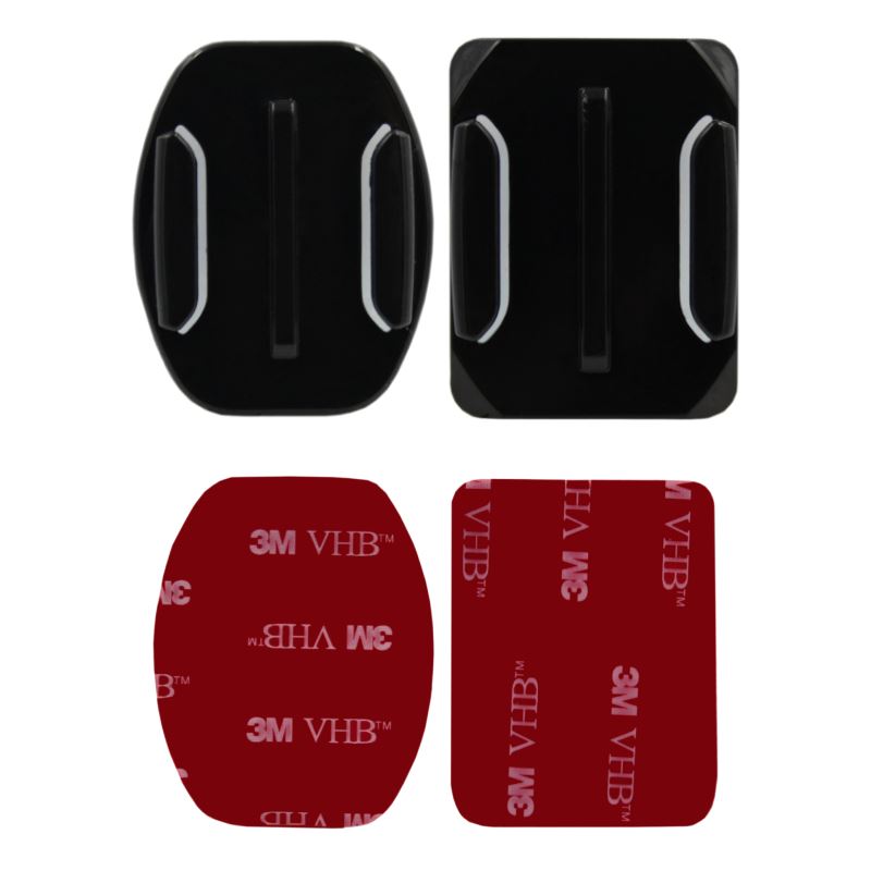 ✔️ Płaskie (flat) - pozwalające na przymocowanie kamery na powierzchniach płaskich, np. deska snowboardowa, skateboard.