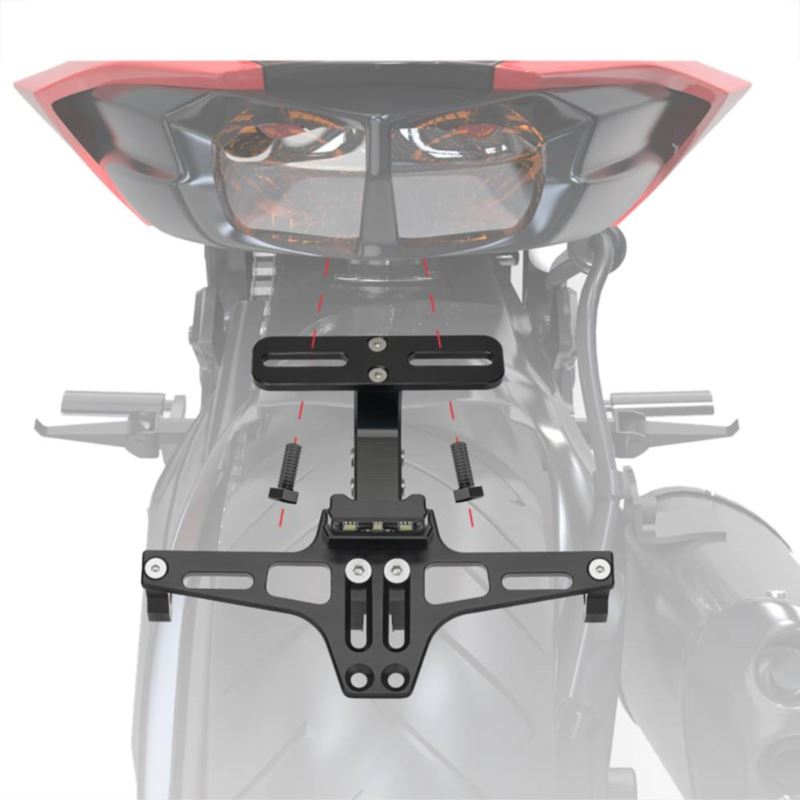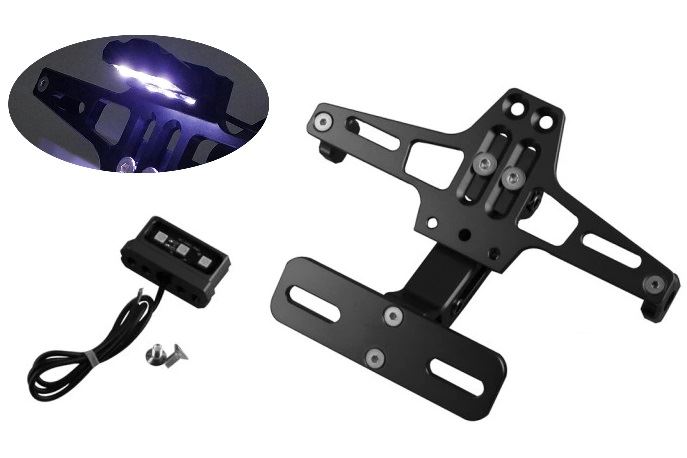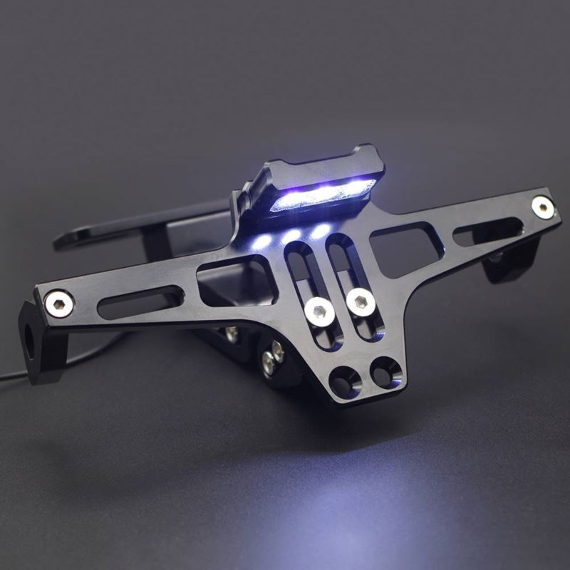 Przedmiotem oferty jest uniwersalny uchwyt do tablicy rejestracyjnej przeznaczony do motocyklów. Wykonany jest z wysokiej jakości stopu aluminium, dodatkowo obrabianego na najnowszej technologii CNC. Twarda, niezawodna powierzchnia wykończona czarnym, matowym kolorem.