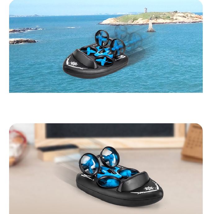 Motorówka 3w1 daje wiele możliwości zabawy i rozwoju kreatywności. Dzięki połączeniu łodzi z dronem możemy pływać łodzią, jeździć po powierzchni i latać dronem.