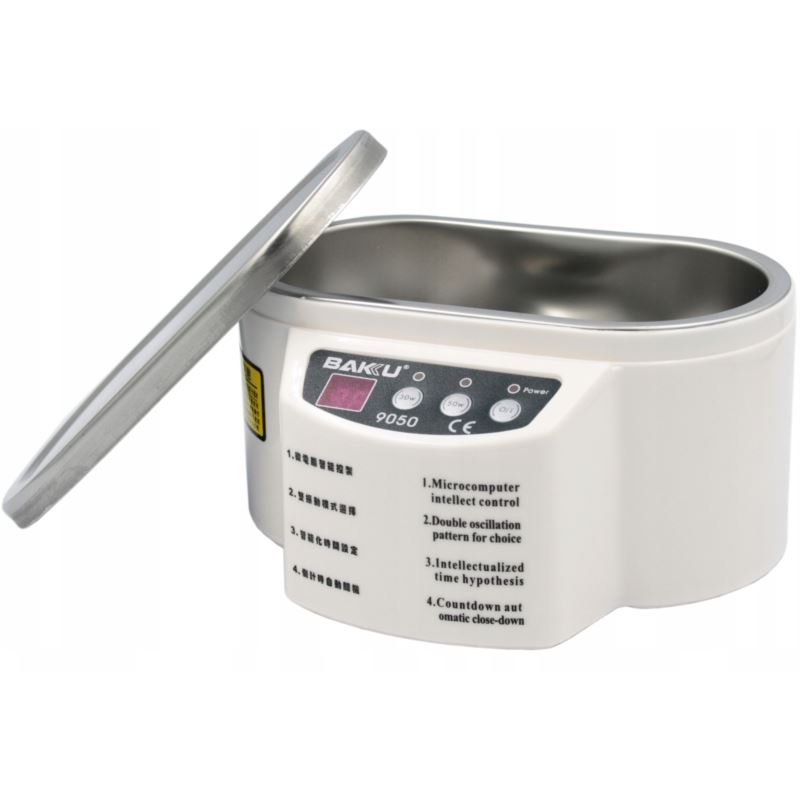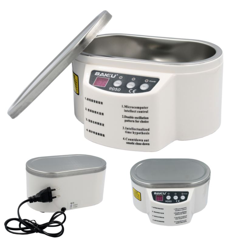 BAKU BK-9050 to wysokiej jakości myjka ultradźwiękowa. Wykonana z użyciem najnowszej techonologii stanowi niezastąpione narzędzie służące do sterylizacji, czyszczenia i dezynfekcji elementów optycznych, elektronicznych, układów PCB, biżuterii czy narzędzi kosmetycznych.