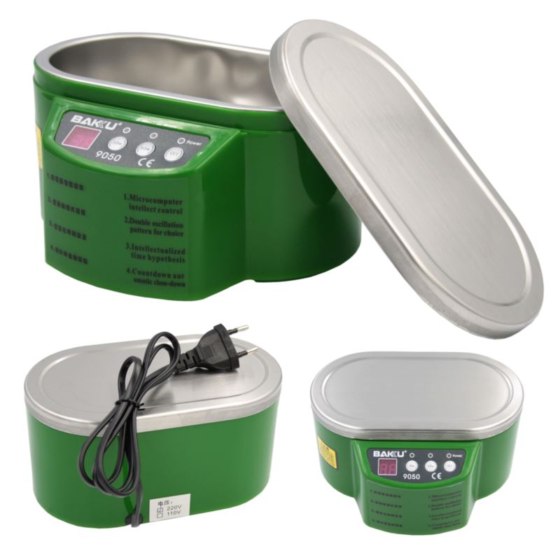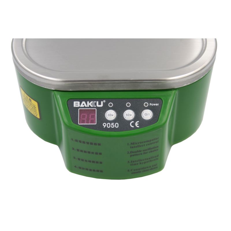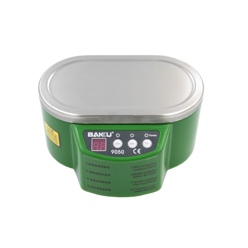 BAKU BK-9050 to wysokiej jakości myjka ultradźwiękowa. Wykonana z użyciem najnowszej techonologii stanowi niezastąpione narzędzie służące do sterylizacji, czyszczenia i dezynfekcji elementów optycznych, elektronicznych, układów PCB, biżuterii czy narzędzi kosmetycznych.