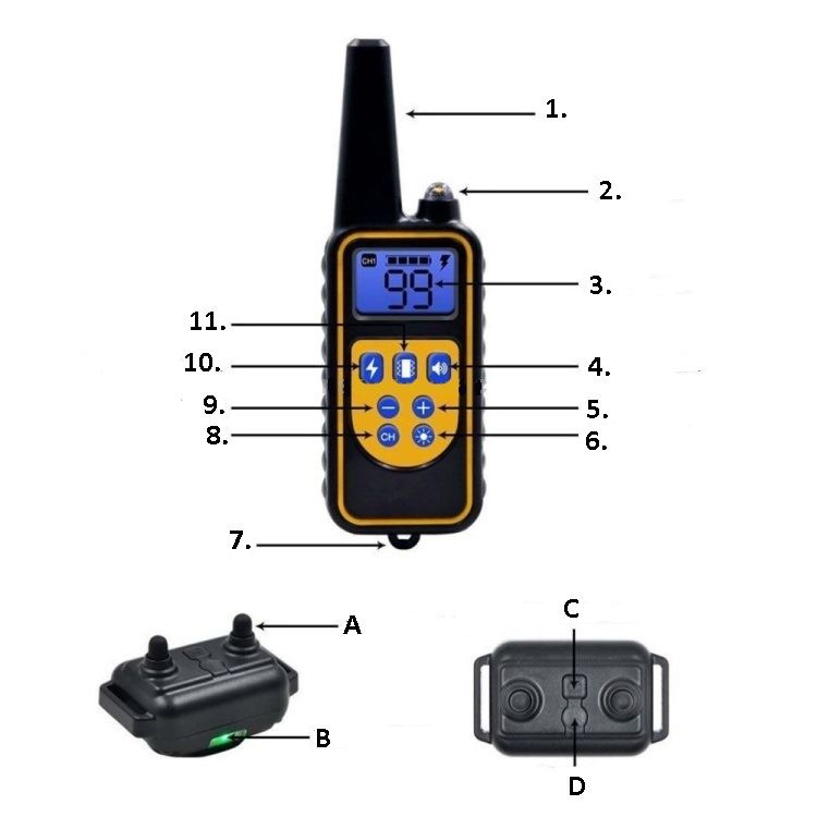 Światło LED w pilocie oraz w odbiorniku - sprawdza się gdy na dworze zapada zmrok. Światło LED w obroży włącza się przyciskiem CH na pilocie - dzięki temu pies jest widoczny gdy jest ciemno.