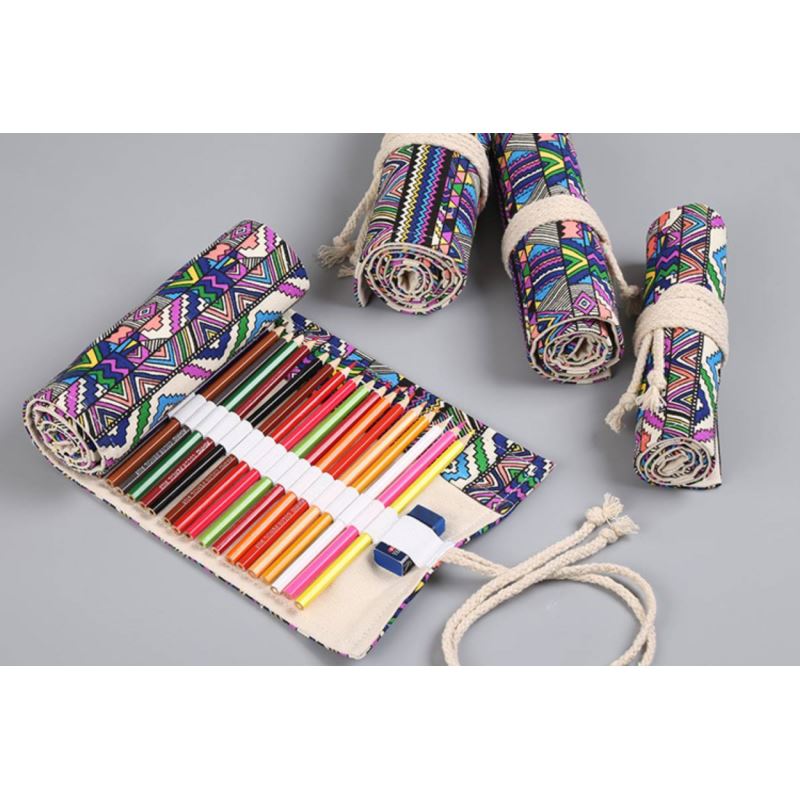 Oferowany produkt to wysokiej jakości zwijany piórnik na kredki. Organizer posiada ładne, kolorowe wykończenie. Z jednej strony posiada dwa sznurki, którymi można "zamykać" piórnik.