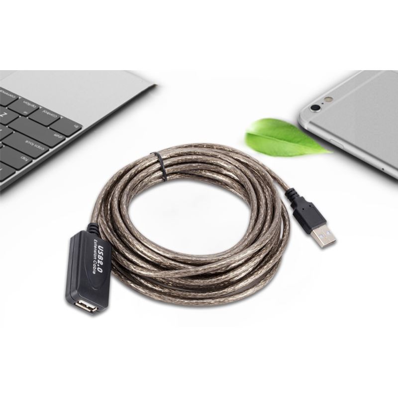 Aktywny kabel USB z wbudowanym wzmacniaczem zapewnia wspaniałą jakość sygnału oraz napięcie odpowiadające specyfikacji USB 2.0 na dużą odległość.