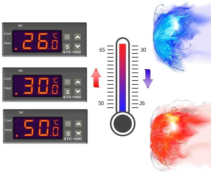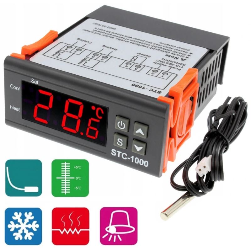 Oferowany termostat cyfrowy STC-1000 to popularny termostat, który umożliwia automatyczne sterownie chłodzeniem oraz ogrzewaniem. Wyposażony jest w czytelny wyświetlacz LCD oraz wodoodporny czujnik temperatury z kablem o długości 1 metra. Produkt znajdzie swoje zastosowanie między innymi przy sterowaniu pracą: