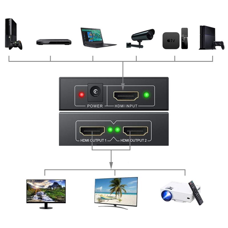 Splitter HDMI to doskonałe rozwiązanie jeśli potrzebujemy rozdzielić sygnał HDMI z dowolnego źródła sygnału na dwa odbiorniki.