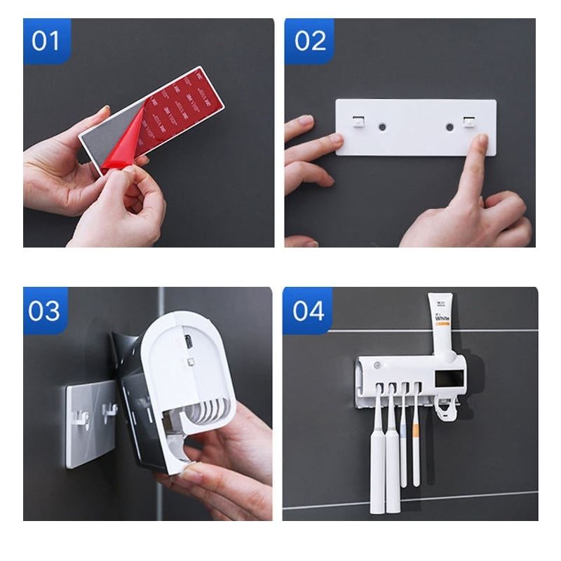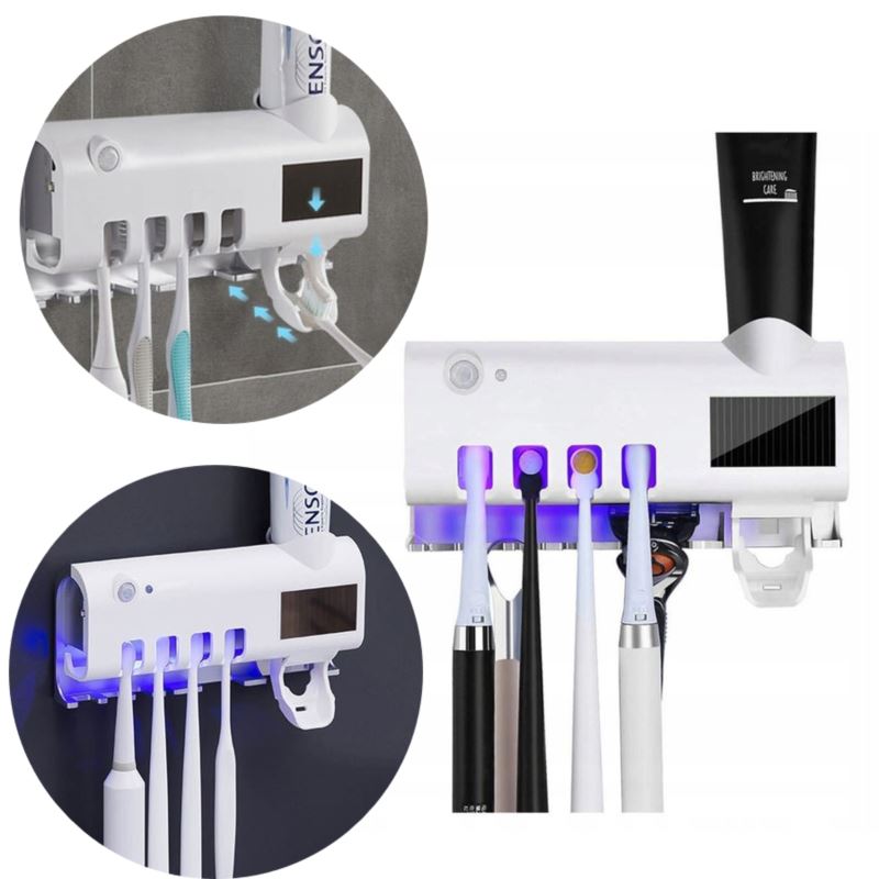 Przedmiotem oferty jest sterylizator UV do szczoteczek do zębów oraz uchwyt w jednym. Dodatkowo urządzenie ma funkcję dozownika na pastę do zębów. Uchwyt wykonany jest z wytrzymałego tworzywa sztucznego, zachowując przy tym elegancki, biały design.