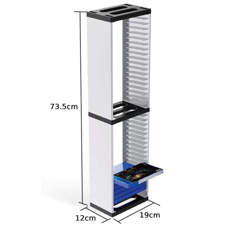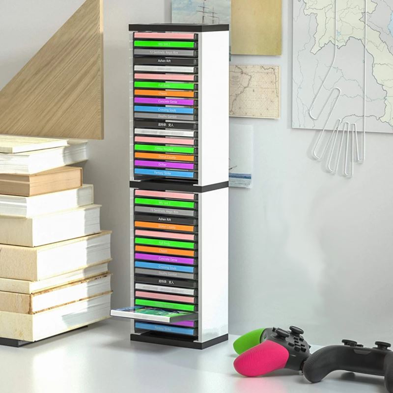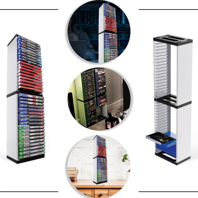 Oferowany stojak zaprojektowany został z ponadczasowym, nowoczesnym designem z myślą o old schoolowym zastosowaniu. Mocna i stabilna konstrukcja ABS pozwala na umieszczenie aż 36 pudełek z grami Playstation, Xbox Series i One, a nawet Nintendo. Jeśli lubisz zatem zbierać pudełkowe wersje gier i z dumą je prezentować - ten produkt jest idealnie dla Ciebie!
