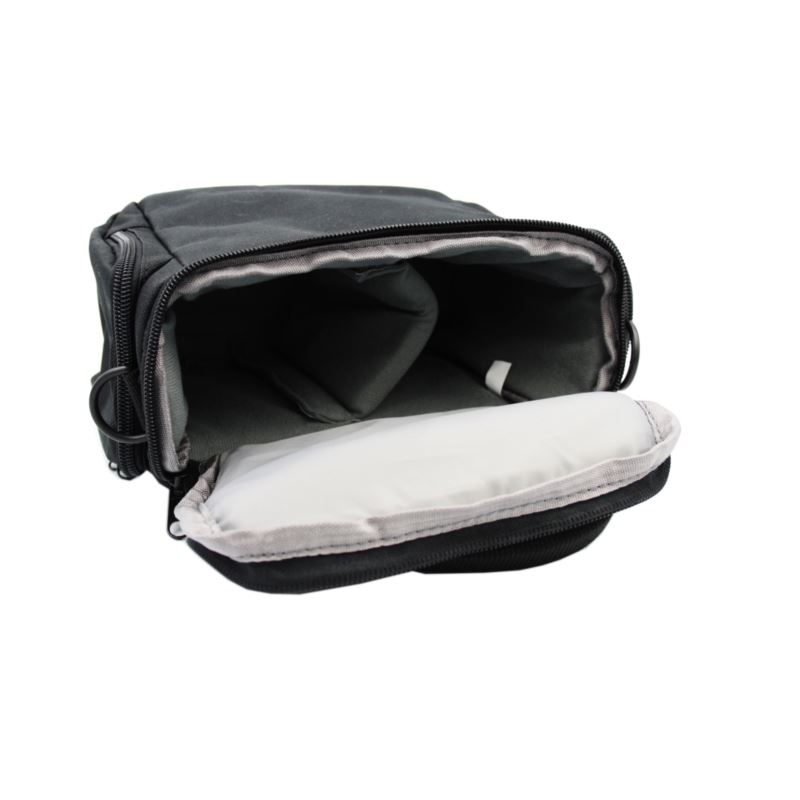 Dodatkowe przegrody spełnią potrzeby nawet najbardziej wymagających użytkowników. Torba posiada dwie boczne kieszenie na suwaki, które pomieszczą drobne akcesoria, filtry, ładowarki czy kable.