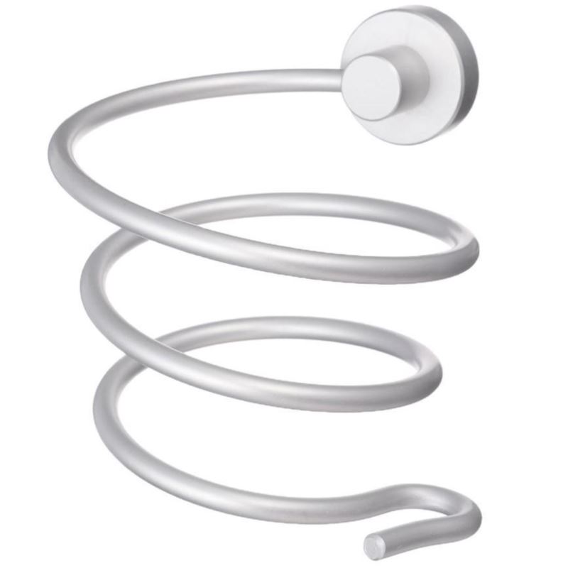 Przedmiotem oferty jest elegancki i praktyczny uchwyt na suszarkę do włosów, który możemy w prosty sposób za pomocą jednego kołka przytwierdzić do ściany. Wyposażony jest w otwór na sprzęt oraz zintegrowany uchwyt na kabel zasilający.
