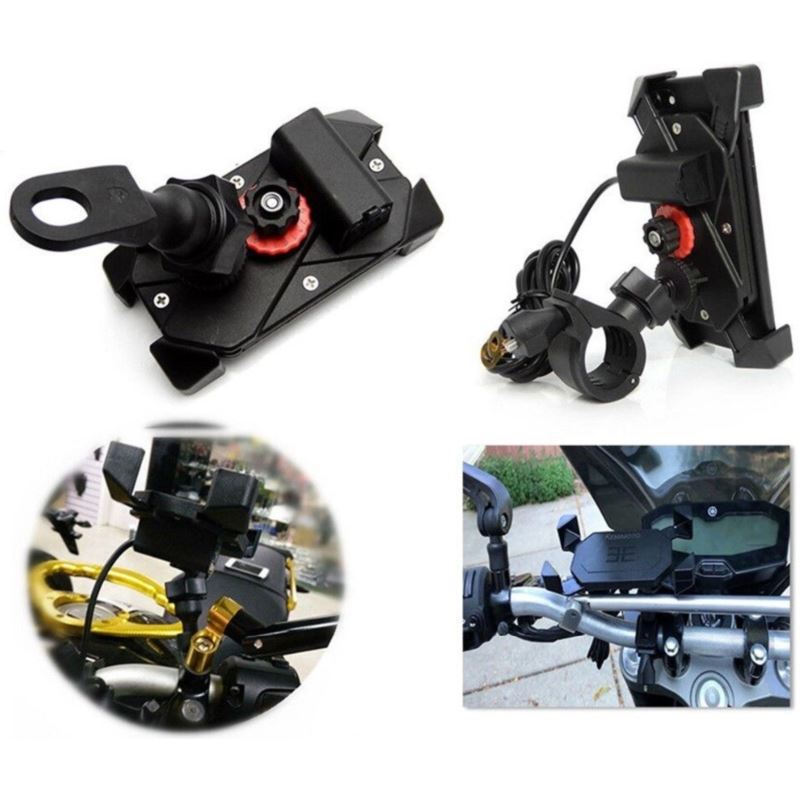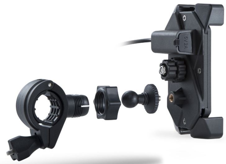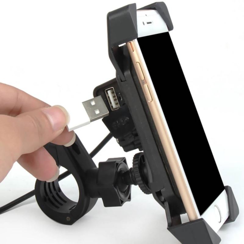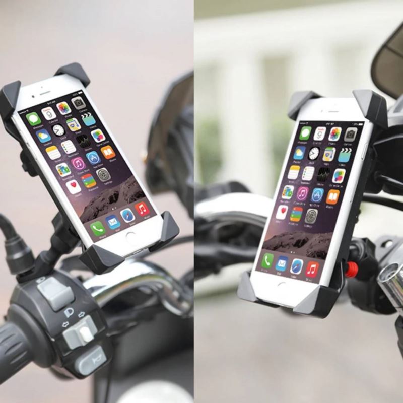 Uniwersalny, bardzo wytrzymały uchwyt telefonu na motocykl. Montaż na kierownicy motocykla jest prosty, oraz nie wymaga dodatkowych narzędzi. Uchwyt został wykonany z wysokiej jakości ABS'u oraz stopu aluminium dzięki czemu jest równocześnie wytrzymały jak i elegancki. Uchwyt posiada regulowane mocowanie dzięki czemu pasuje do większości kierownic rowerowych. Regulowane mocowanie w 4 punktach urządzenia zapewnia bezpieczeństwo i stabilność chwytu.