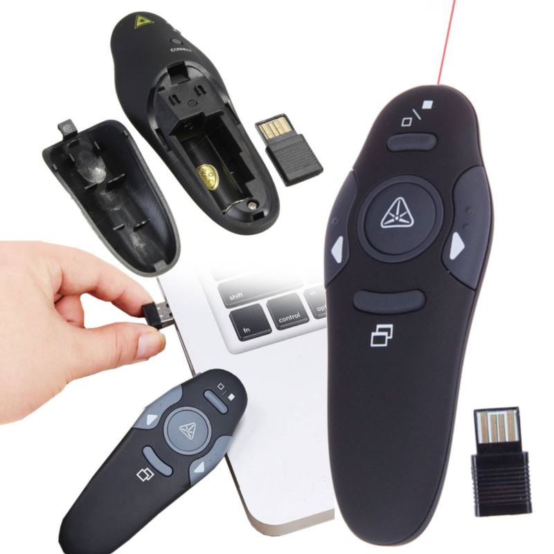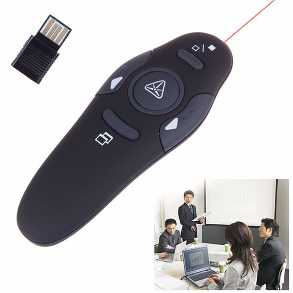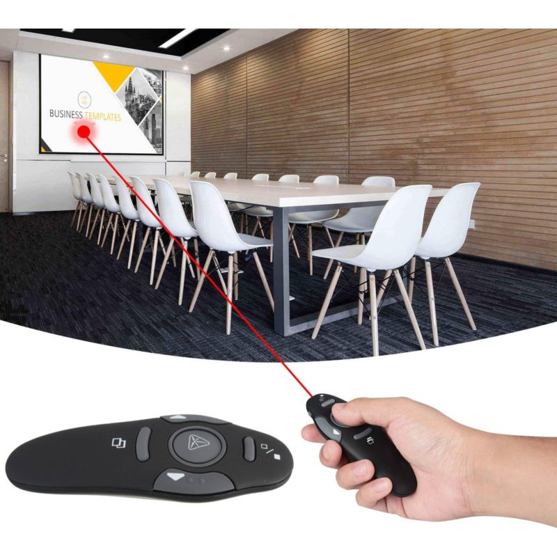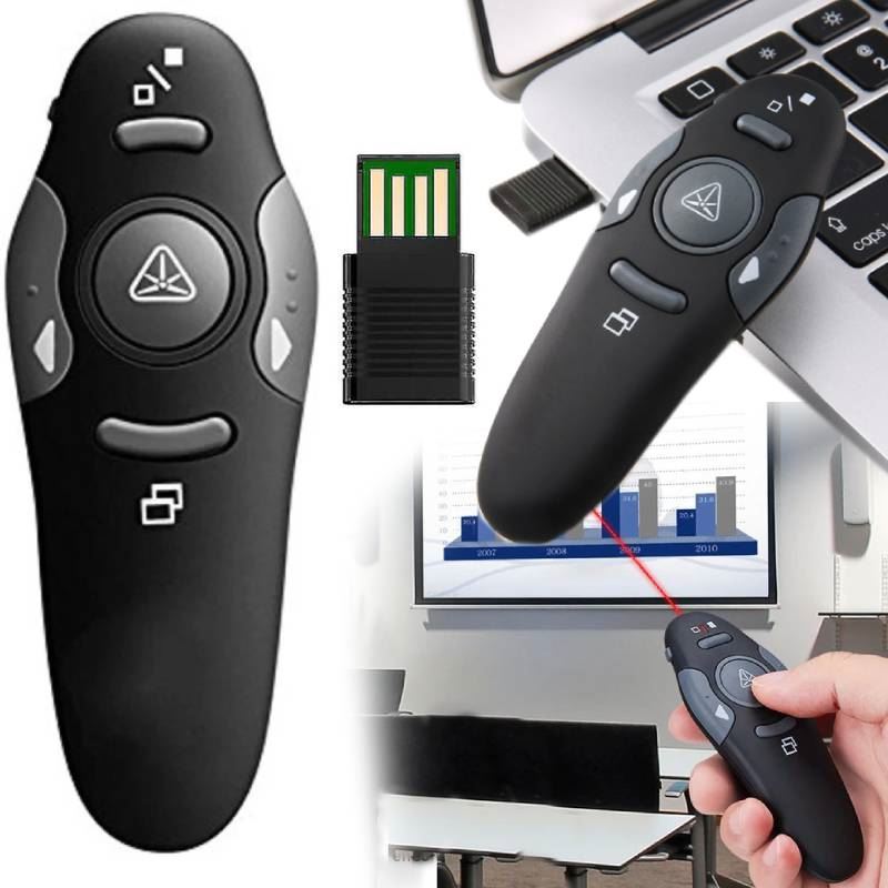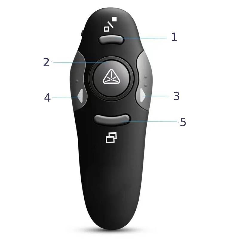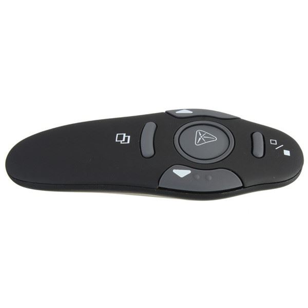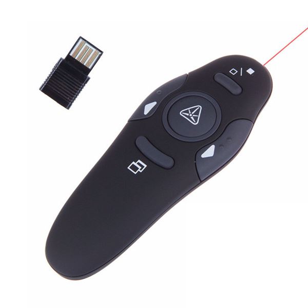 Czerwony laser pozwoli ci na swobodne wskazywanie najważniejszych elementów prezentacji maksymalnej odległości 200 metrów.Przyciski umożliwiają zmianę slajdów w przód i tył, wygaszenie ekranu czy wyłączenie urządzenia. Urządzenie ma zasięg do 15 metrów.