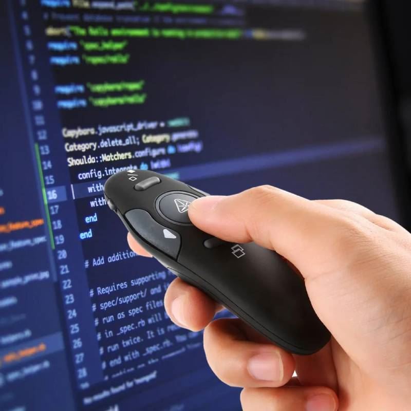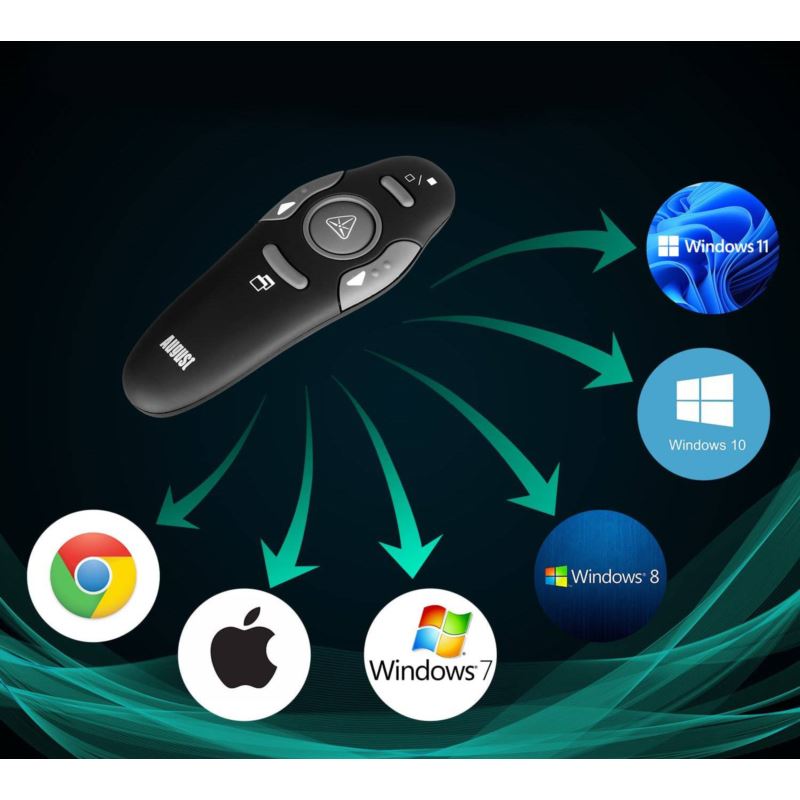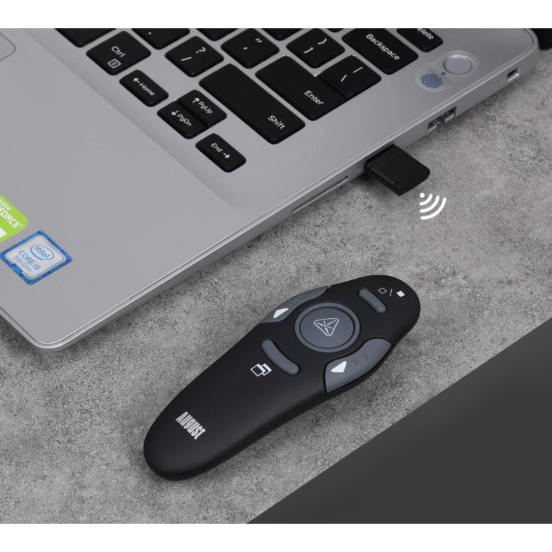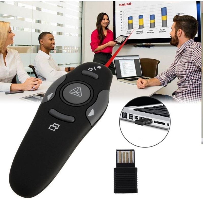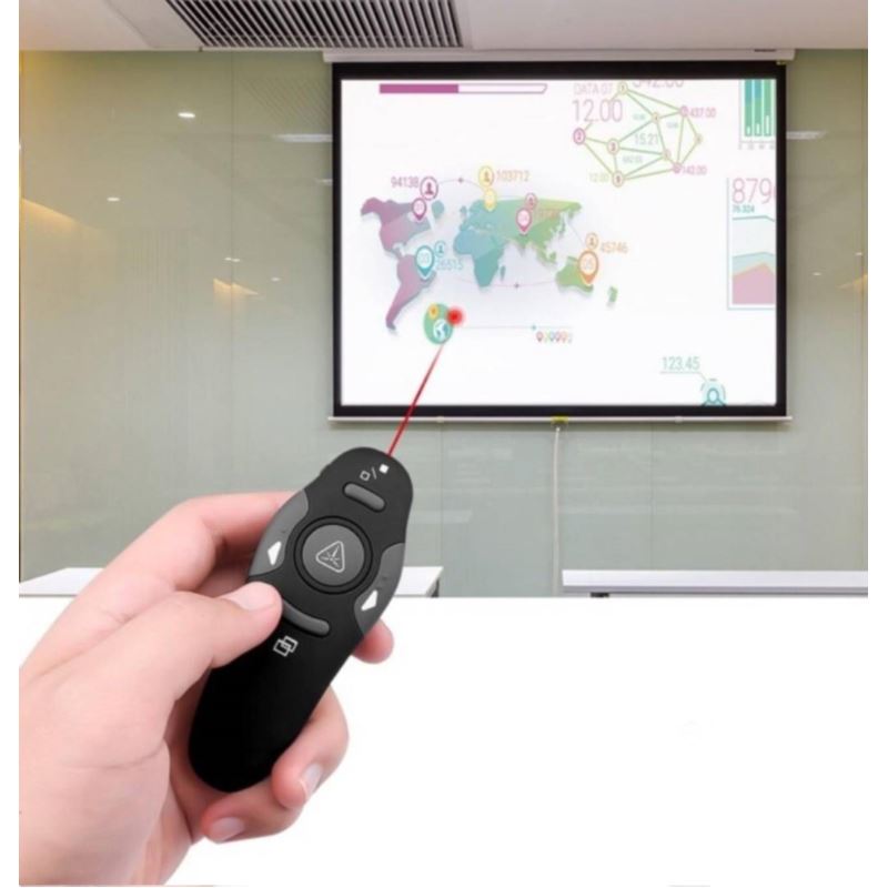 Czerwony laser pozwoli ci na swobodne wskazywanie najważniejszych elementów prezentacji maksymalnej odległości 200 metrów.Przyciski umożliwiają zmianę slajdów w przód i tył, wygaszenie ekranu czy wyłączenie urządzenia. Urządzenie ma zasięg do 15 metrów.