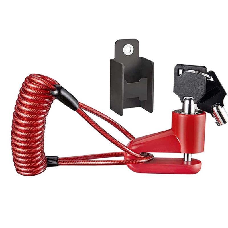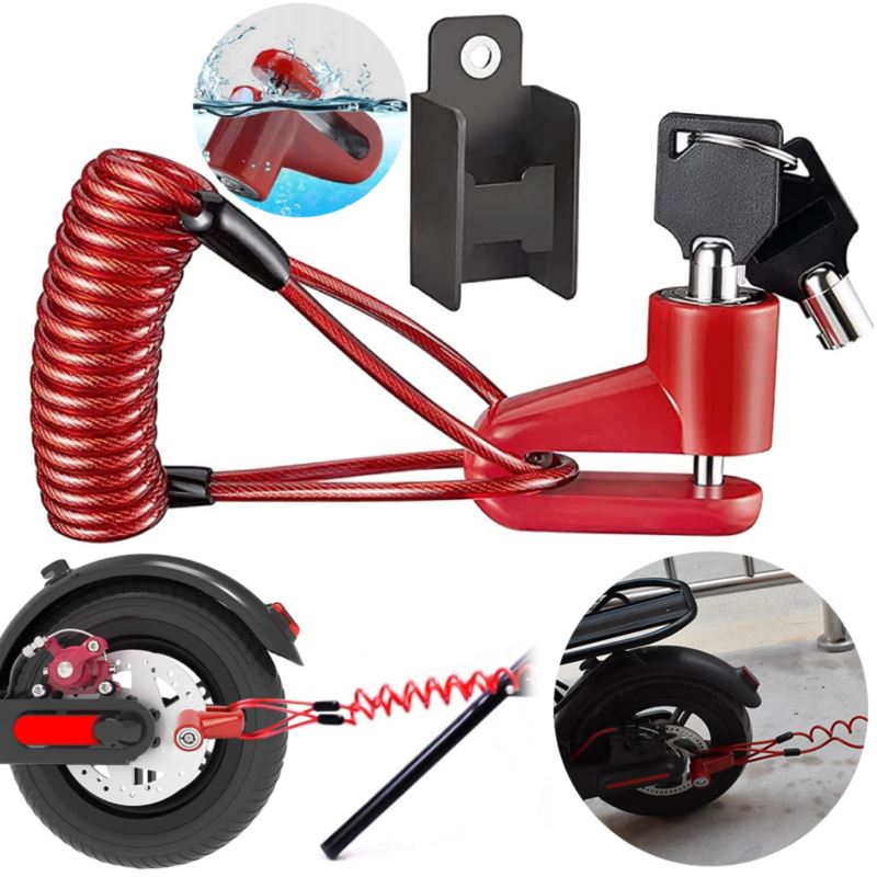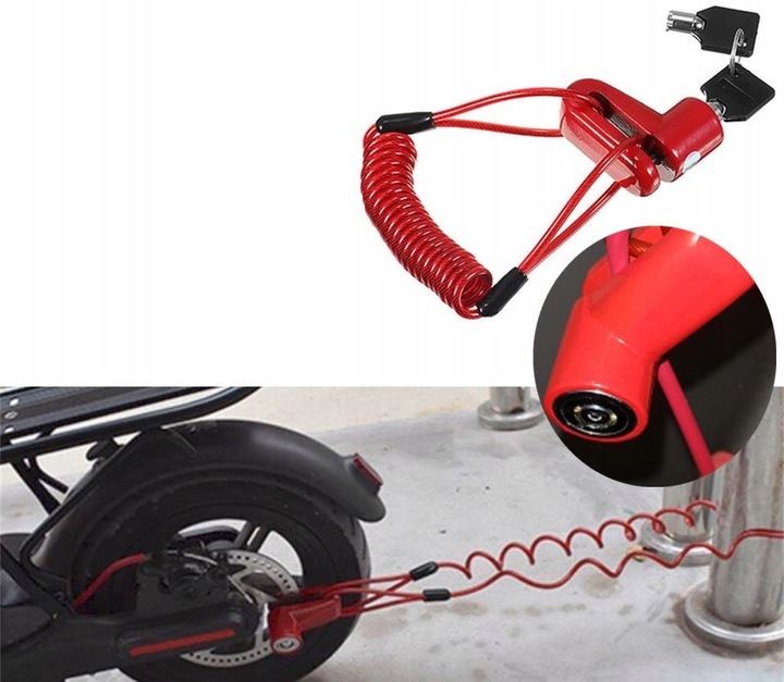Blokada tarczowa + stalowa linka to wysokiej jakości produkt wykonany z metalu zamykany na klucz, który ma za zadanie zablokowanie kół naszego jednośladu np. hulajnogi / roweru / motoru lub przypięcie go do dowolnego miejsca, solidnego obiektu np. ogrodzenia.