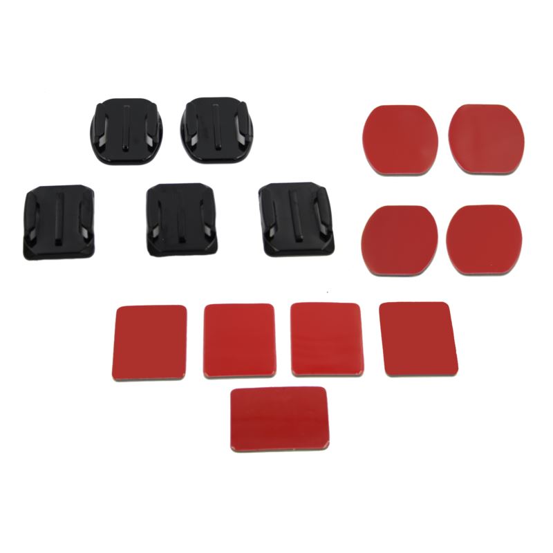 ✔️ Płaskie (flat) - pozwalające na przymocowanie kamery na powierzchniach płaskich, np. deska snowboardowa, skateboard.