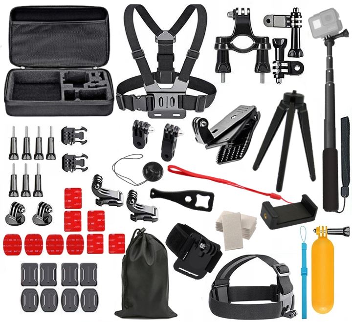 Oferowany zestaw to zbiór praktycznie wszystkich najpotrzebniejszych elementów do kamer sportowych.