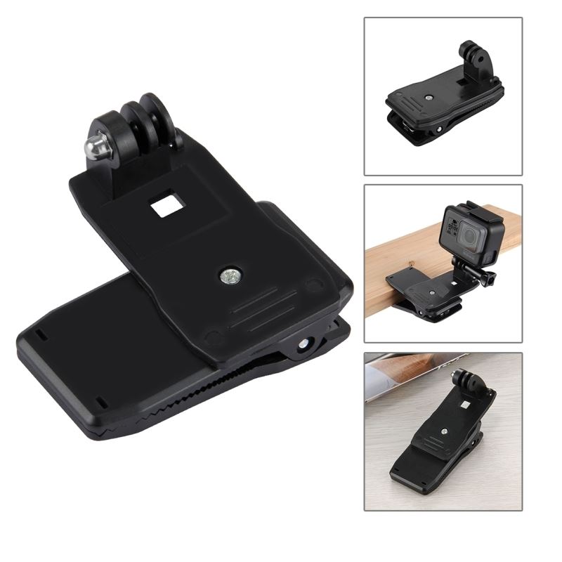 Klips posiada ząbkowaną powierzchnię, dzięki czemu solidnie się trzyma. Część klipsa jest obrotowa, dzięki czemu można łatwo umieścić kamerę pod dowolnym kątem. Uchwyt pozwala na montaż kamery na pasku plecaka, spodni oraz do różnych płaskich powierzchni (jak np. blat stołu).