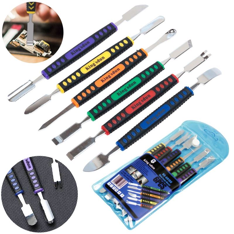 Zestaw 6 elementów dedykowany jest do naprawy tabletów, urządzeń elektronicznych, smartfonów i wielu innych. Dzięki nim bezpiecznie zdejmiesz obudowę, wyświetlacz lub inne elementy uszkodzonego urządzenia.